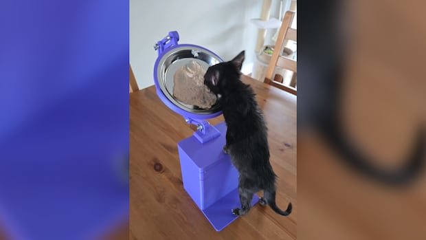 A couple in Kamloops, British Columbia, has used 3D printing technology to create a feeding stand for a foster kitten with a unique medical condition. The kitten, named Piglet, is five months old and is being cared for by Angela and Jason Lyall. When they first took her in at two days old, Piglet struggled to eat properly, even as a bottle-fed baby. She was part of a litter with her mother and was fostered from a local rescue organization called Sammy’s Forgotten Felines.