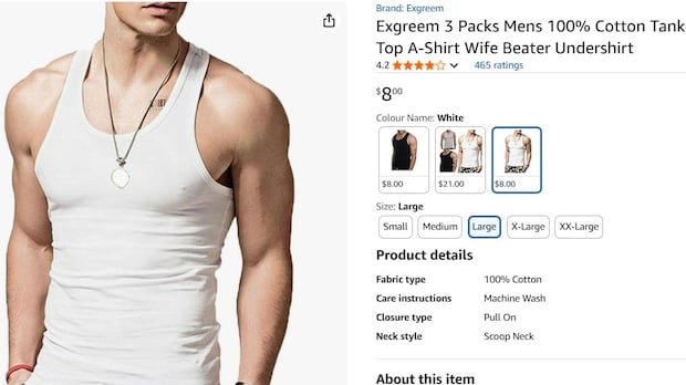 Despite a ruling by the Ad Standards Council that deems the term “wife beater” offensive and in violation of Canada’s advertising code, numerous ads for men’s tank tops with that description can still be found on Amazon’s Canadian website.