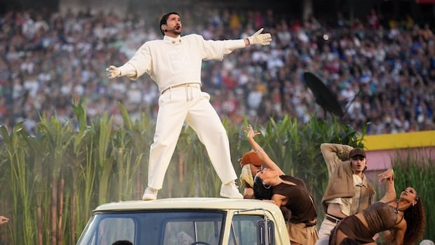 While the singer refrained from explicit political messages, his song choices subtly touched on socio-political issues, such as referencing power outages in Puerto Rico. The performance also included a cameo by Ricky Martin, emphasizing concerns about gentrification through a set mirroring the album cover art of “DtMF.”