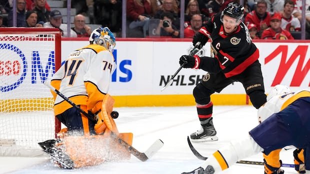 The Ottawa Senators may face an extended period without their team captain as the NHL season kicks off. Brady Tkachuk sustained a right hand injury after being cross-checked by Roman Josi of the Nashville Predators during the first period on Monday, leading to an awkward collision with the boards. Despite continuing to play, Tkachuk appeared uncomfortable and was sidelined for the final nine minutes of the game, which ended in a 4-1 loss for the Sens.